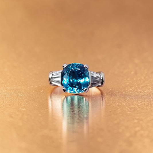 6.56ct Cambodian Blue Zircon and Diamond Ring