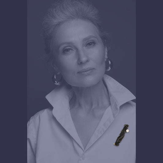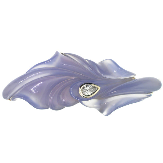 Black Chalcedony Sculpture with Tanzanite in 18kt Brooch