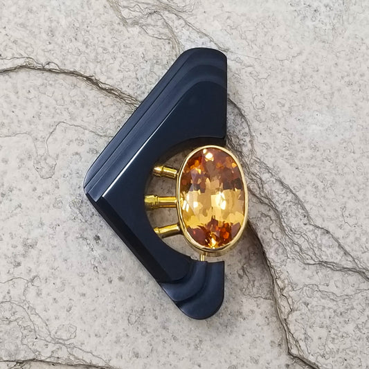 Black Chalcedony Sculpture with Oregon Sunstone in 18kt Pendant & Brooch