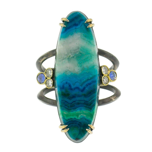 Malachite, Chrysocolla, & Quartz 18kt & Sterling Silver Shield Ring