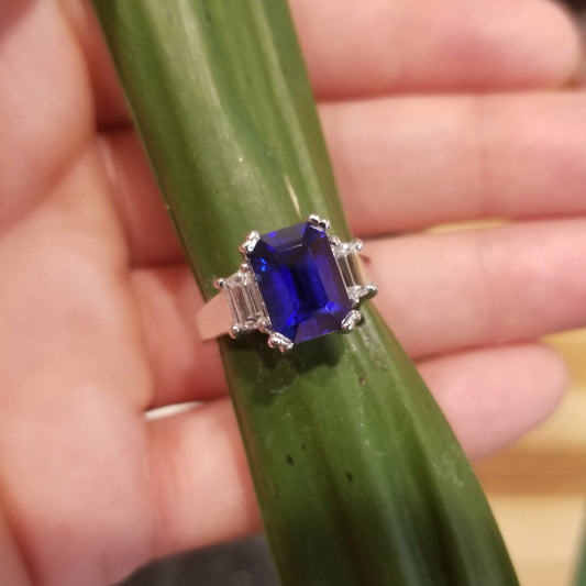 Royal Blue Sapphire & Diamond Platinum Ring (GRS lab report)